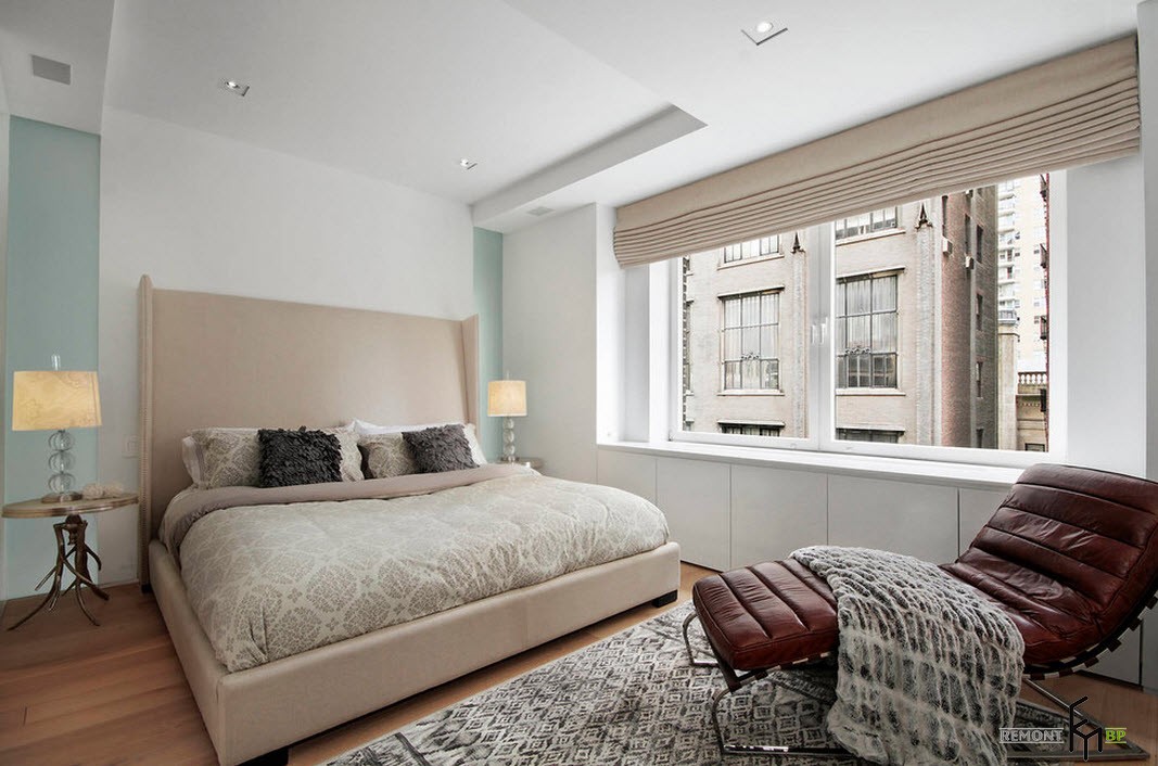Оформление спальной комнаты в стиле минимализм подразумевает отсутствие лишних деталей, то есть в комнате есть только то, без чего нельзя обойтись. Ну, конечно, здесь может быть и декор, но в минимальном количестве. Мебель обычно имеет простые формы и часто бывает многофункциональной, то есть имеет дополнительные ящики или секции для вещей, что позволяет сэкономить пространство.
