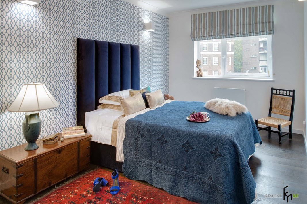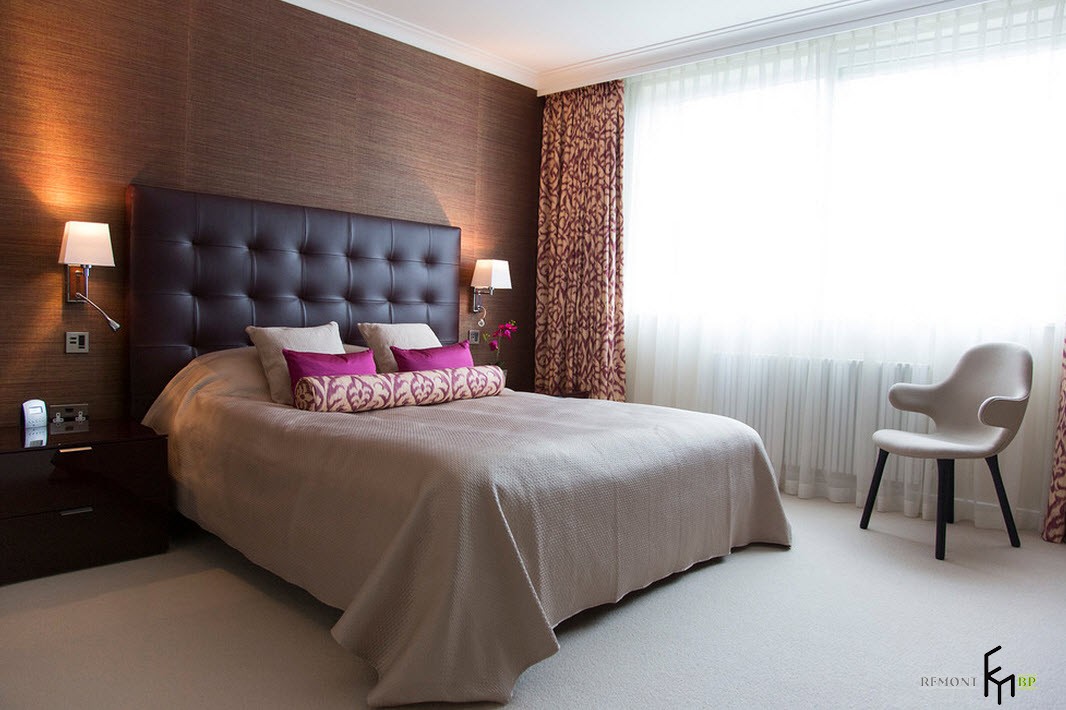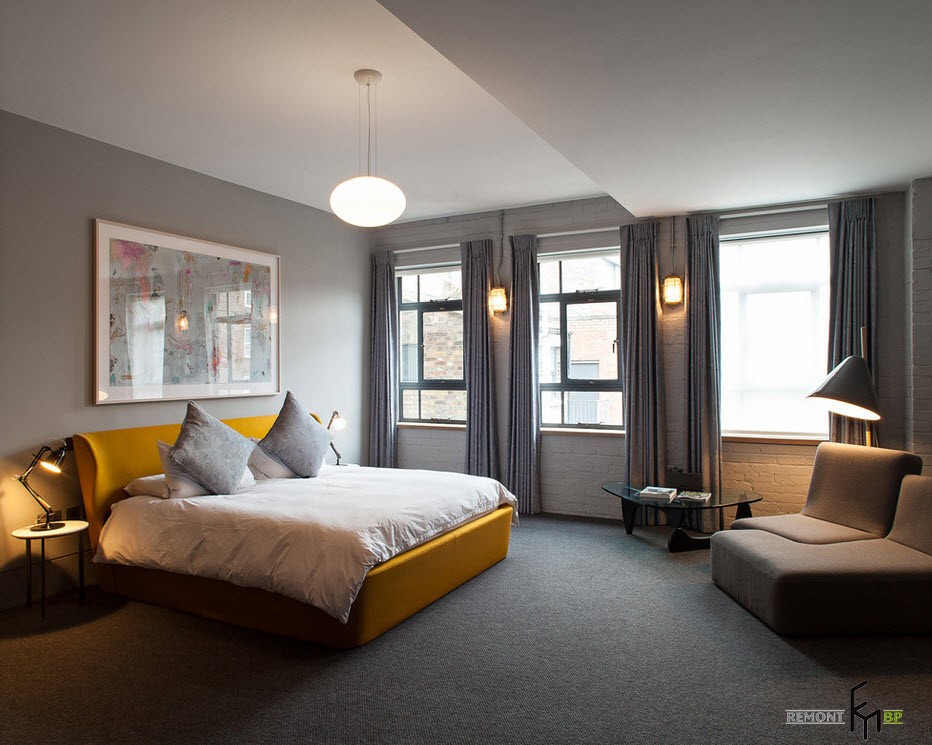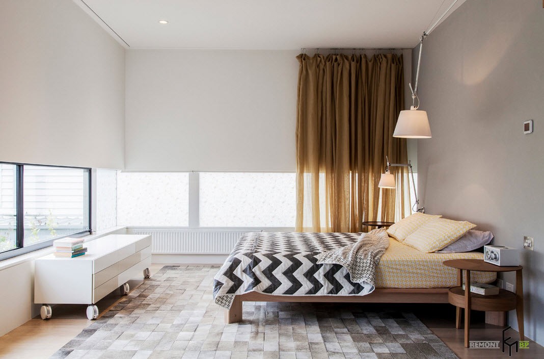 А если площадь комнаты большая, то не стоит думать, что здесь задача проще. Многим кажется, что раз места много, то можно поставить кучу мебели, декора и так далее. Таким образом, опять же произойдет перенасыщение комнаты. Здесь нужно отталкиваться от кровати, ведь ее же можно поставить по центру, что очень удобно и красиво, и чего нельзя себе позволить, если комната небольшая. Поэтому можно смело начать с поиска подходящего места для кровати, такого, где солнце не будет бить по утрам в глаза и мешать спать или, наоборот, будет. Некоторые, например, специально ставят кровать так, чтобы просыпаться под ласковые первые лучи солнца. К слову, в таком случае можно поставить жалюзи и закрывать окно по выходным дням, когда не надо рано вставать.