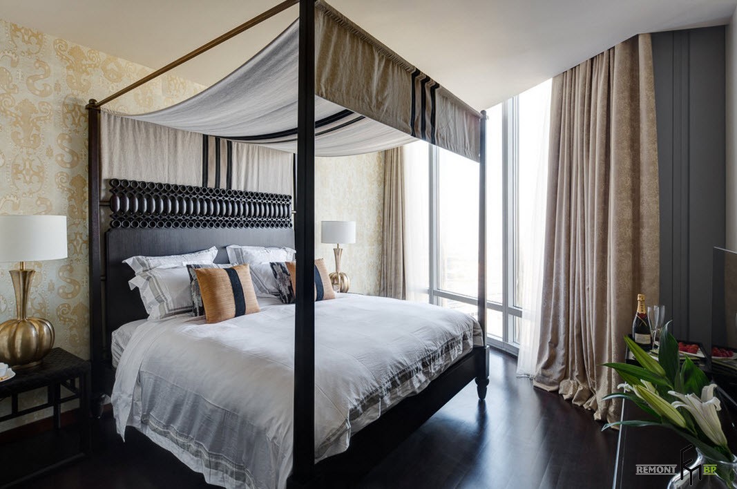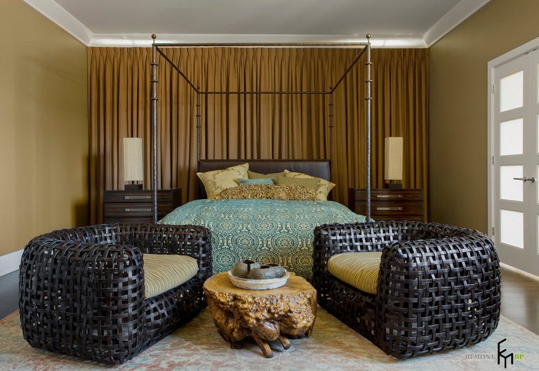 Ну а если вас больше устраивают общие идеи, то можно, например, выбрать низкую кровать на подиуме или широкую с балдахином, поставить несколько аксессуаров восточной тематики, а также воспользоваться текстилем, свойственным Востоку. Самое главное, в восточном интерьере нет ничего лишнего, он, кстати, отчасти напоминает стиль Минимализм (все на своих местах, все только самое необходимое, минимум декора). Также в таком интерьере должно быть достаточно простора и воздуха, для этого опять же не перегружайте помещение ненужными предметами, все держите на своих местах, можно использовать большие окна и стеклянные поверхности, последние добавят легкости. Еще здесь должны быть малые формы – чайные столики, небольшие табуретки и тому подобное. Вместо перегородки, например, используйте передвижную ширму, кресла замените подушками. С помощью этих нехитрых тонкостей даже небольшая комната будет выглядеть просторной и уютной.