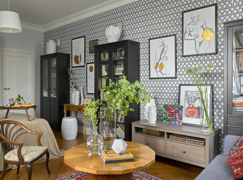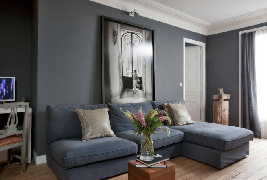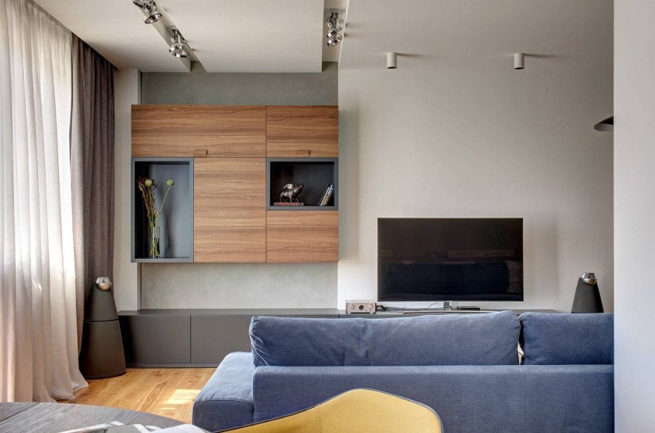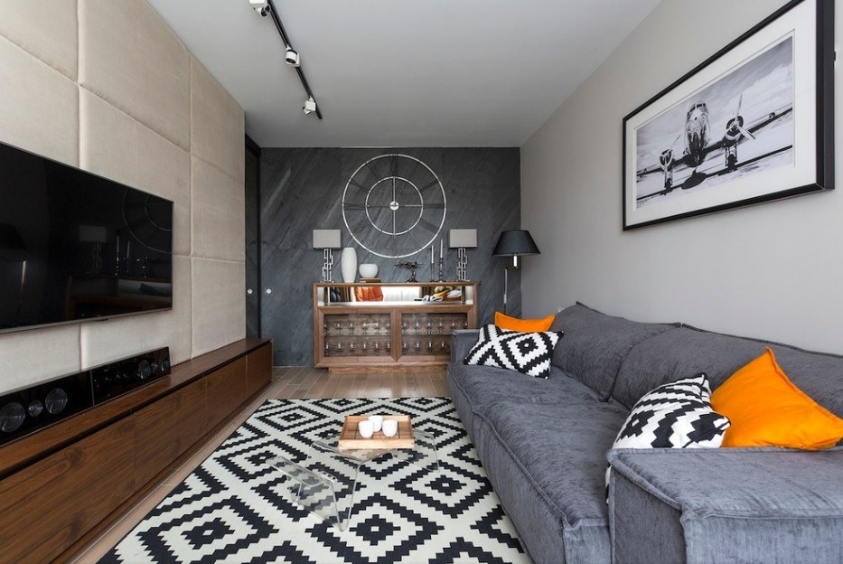Среди актуальных для отделки стен также стоит выделить серый цвет. Ранее его старались избегать в оформлении жилого помещения, считая данный вариант слишком скучным, мрачным. Однако сейчас он буквально на пике популярности. Дизайнеры отмечают, что серый цвет многогранный и способен сделать интерьер как строгим, так и лаконичным или же элегантным. При этом он замечательно сочетается с ярким розовым, синим, желтым и зеленым цветом. Это позволяет чуть больше экспериментировать. То есть в такой гостиной можно использовать пышные растения, оригинальный декор или же яркий текстиль. Главное, чтобы все эти детали подчеркивали выбранный стиль интерьера.