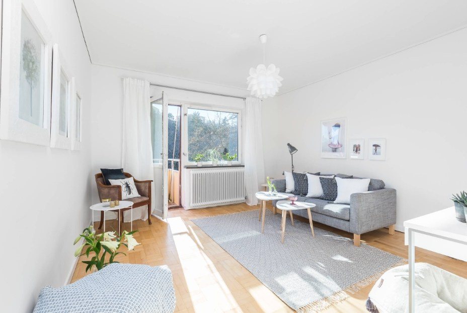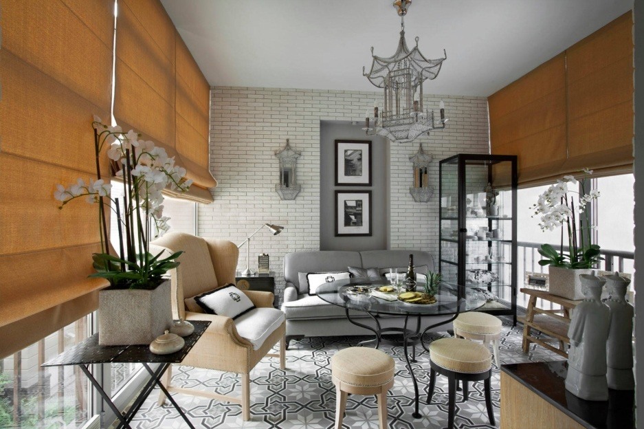 Безусловно, весомую роль играет отделка пола, потолка и стен. Дизайнеры рекомендуют выбирать для пола материал, имитирующий дерево. Для стен идеально подойдут светлые текстурные обои, а потолок лучше оформить в классическом белом цвете. Если настолько светлое решение вам не по душе, просто добавьте контрастные акценты. Это могут быть предметы мебели, а также различные декоративные детали: подушки, ковры, картины и многое другое. Главное – не использовать их слишком много. Лучше периодически менять, тем самым задавая разное настроение общему интерьеру.