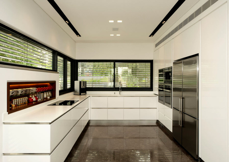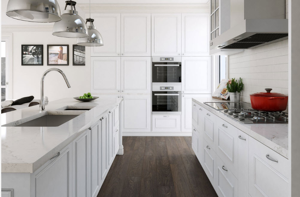 Для современного домовладельца давно стало нормой то, что такие необходимые предметы обихода как бытовые и осветительные приборы, стали частью декорирования кухонного пространства. Бытовую технику очень редко «прячут» за фасадами кухонных шкафов, демонстрируя оригинальный и стильный дизайн. Не только для стиля хай-тек фасады бытовых приборов стали частью образа помещения – это не просто темные пятна стекла и блеска хромированных частей, это целая концепция интеграции технического прогресса в красоту и практичность оформления кухонного помещения.