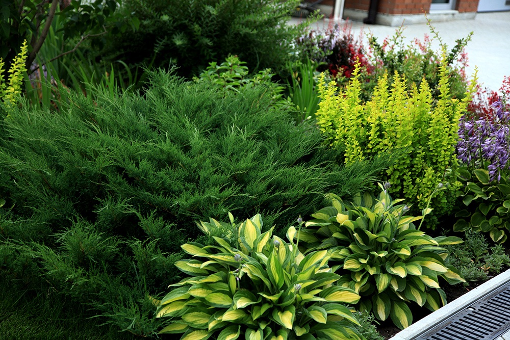 В свою очередь, можжевельник также прекрасно может соседствовать с астильбой. Он выглядит изысканно, ярко, благодаря чему часто является главным в композиции. Несмотря на то, что астильба в данном случае будет на втором плане, смотрится она не менее привлекательно. Для декорирования ландшафтного дизайна ее достаточно часто высаживают вместе с папоротником, лилейниками или геранью. Интересным и нетипичным будет сочетание в саду астильбы с ландышами, тюльпанами, рододендронами и крокусами.