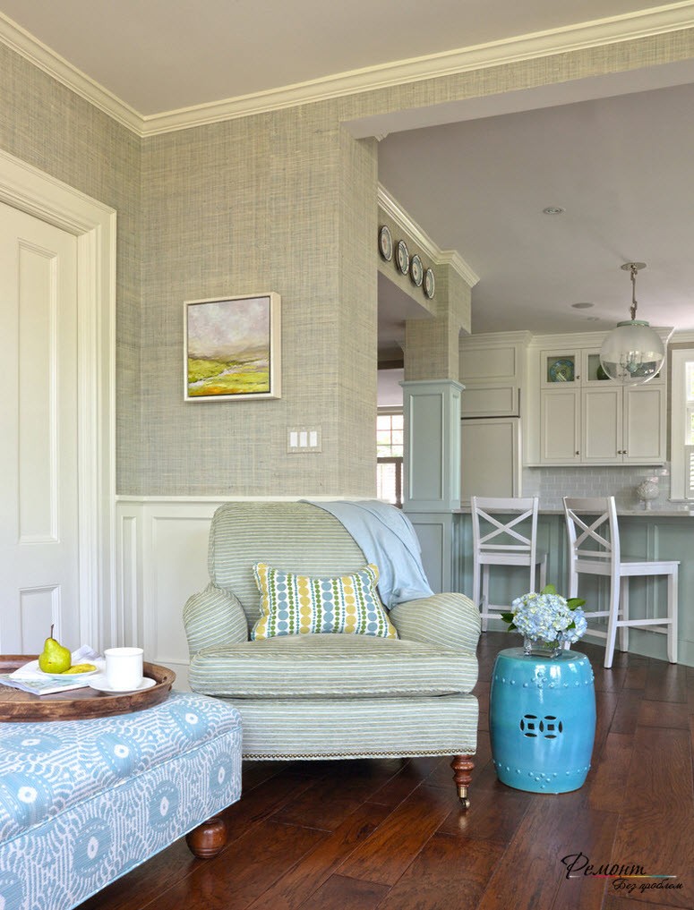 Однако если по душе более светлые помещения, то отлично в такой интерьер впишется мягкая мебель со светлой обивкой под текстуру льна и журнальный столик из натурального дерева. В дополнение к бамбуковым обоям можно использовать жалюзи из того же материала, которые придадут завершенности всему интерьеру.