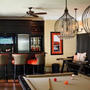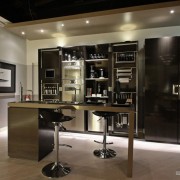 Чаще всего освещение встраивают в переднюю панель барной стойки, но это решение современные дизайнеры уже считают устаревшим и заезженным. Намного оригинальнее смотрятся разноцветные огни, которые сменяют друг друга внутри стойки, выполненной из какого-либо прозрачного или полупрозрачного материала. Кроме того, если бюджет ремонта позволяет, ваше место для дружеского времяпрепровождения может стать настоящей стереосистемой, обеспечивая не только оригинальное освещение, но и музыкальное сопровождение.