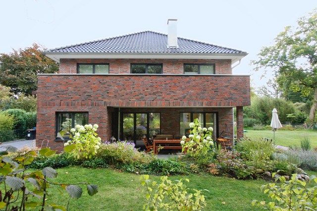 Сегодняшнее цветовое разнообразие керамической облицовки удивительно. В дополнение к обычной красно-коричневой керамике с шероховатой поверхностью производители создают материал с гладкой, матовой, глянцевой или текстурированной поверхностью. Чтобы построить действительно красивый внешний вид здания, не выбирайте слишком яркие и насыщенные цвета кирпичей. Особенно, когда их текстура блестящая. Стена будет выглядеть безвкусной и утомительной для глаз. Нет необходимости строго придерживаться классического баварского принципа, при котором облицовочный кирпич должен быть только красным и коричневым. Он может быть от молочного до темно-серого цвета и даже иметь пропитку черного или синего. Но темные цвета должны быть приглушенного оттенка, а текстура передней поверхности кирпича — не блестящая. Фасады, выполненные в таком варианте, будут иметь шикарный внешний вид.