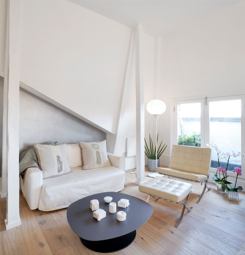 Белый — это отличная идея в дизайне интерьеров малой площади, труднодоступных, узких, слабо освещенных. Комната становятся выразительнее, лучше поглощают естественный свет, делая его ярче. Более того, белые стены делают помещение просторными. Отличным примером является современная гостиная, которая может быть чрезвычайно узкой и продолговатой, имея доступ в свет только благодаря одному окну. Универсальное использование белого делает комнату больше и ярче.
