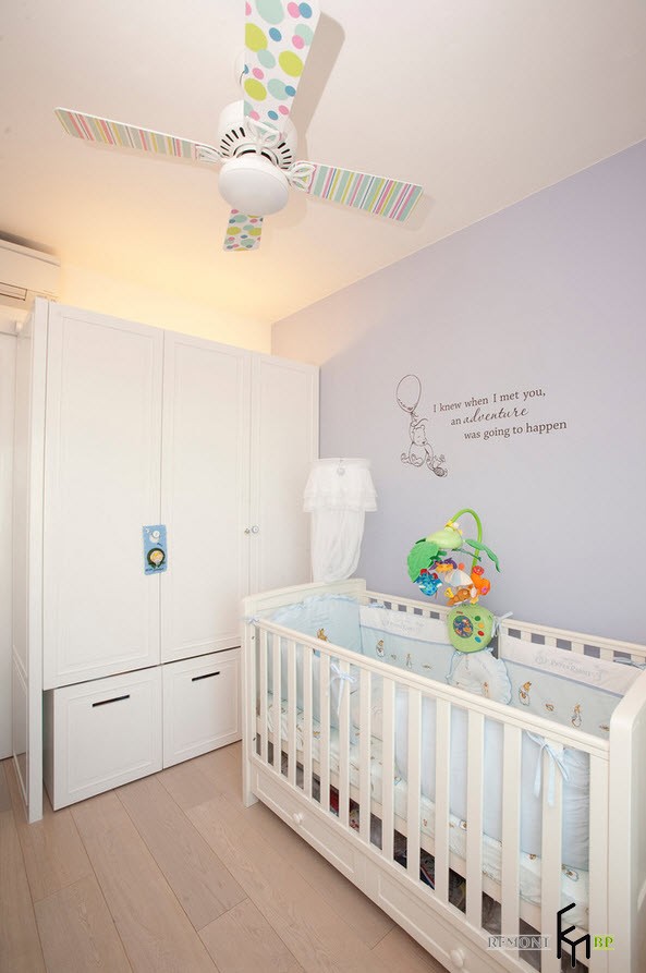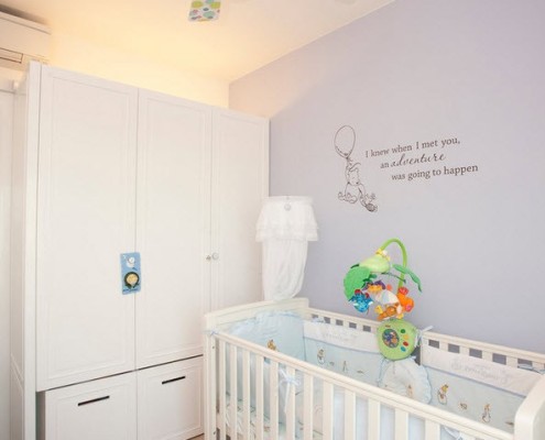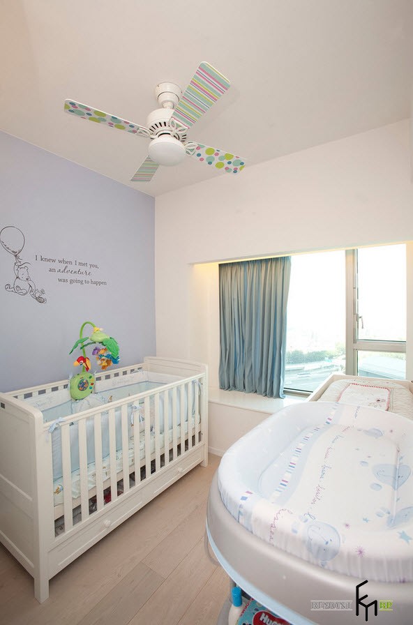 Уголок для малыша оформлен веселее. И пусть монополия за холодными цветами, детские вещи несут в себе другую энергетику и наполняют пространство теплом и нежностью. Стоит отметить высокую экологичность и корректную организацию детской.