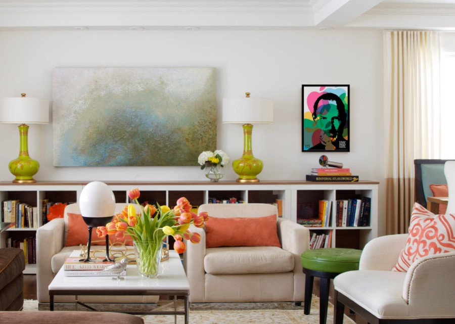 Элегантный нейтральный тандем белого с серым или бежевым создает впечатление минималистичной однотонности. А так называемое «яркое комбо», представляющее собой сочетание белого с самыми выразительными оттенками эффектно смотрится в любом интерьере с белой мебелью.