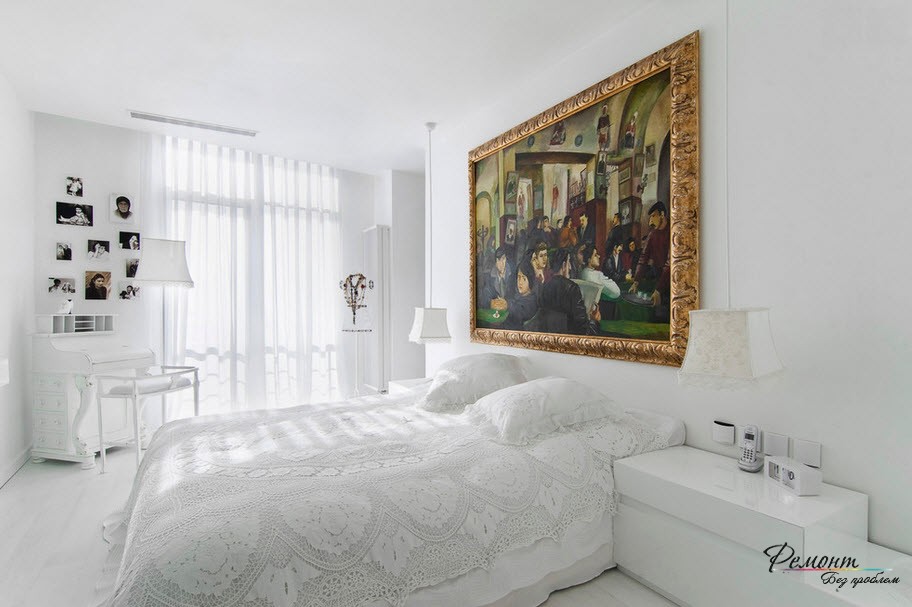Очень полезным можно считать свободу выбора стиля для помещения. Белая стена отлично выглядит как в классическом интерьере, так и в стиле хай-тек. Любые аксессуары, картины и светильники хорошо будут смотреться на белой отделке. Кроме того такую поверхность можно использовать как объект для творчества и расписать ее красками или использовать трафарет.