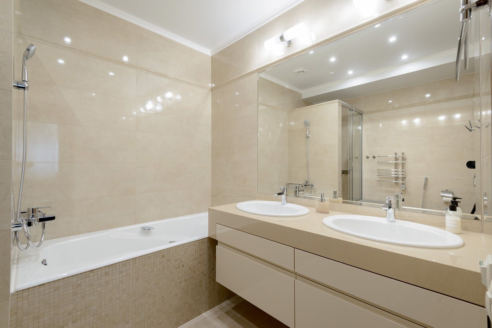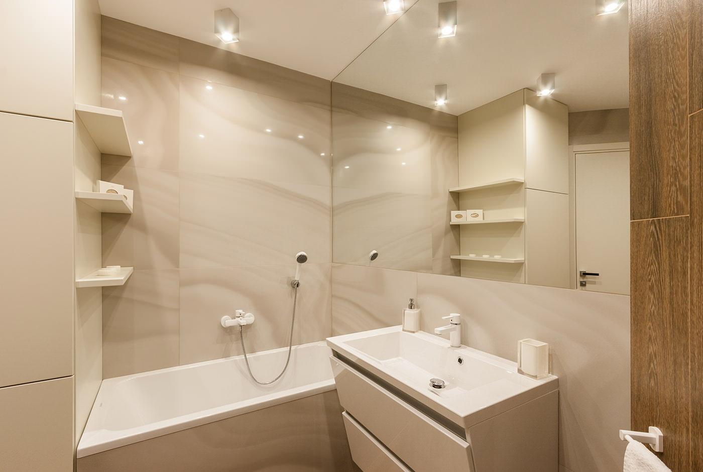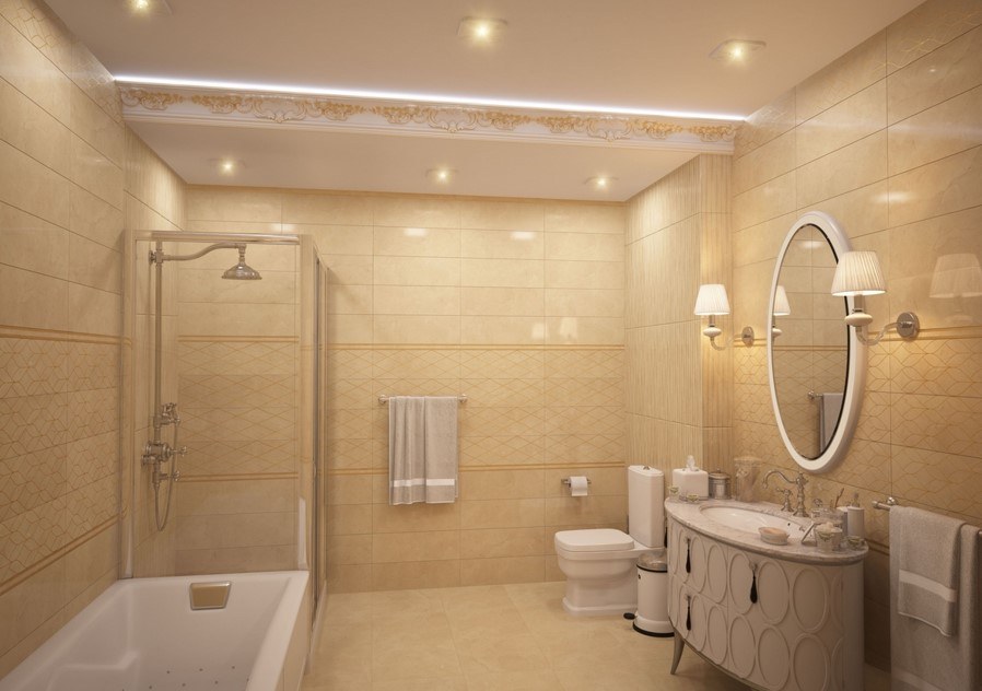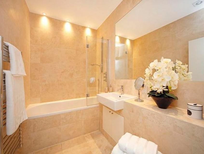 Вот несколько советов по освещению бежевой ванной комнаты: