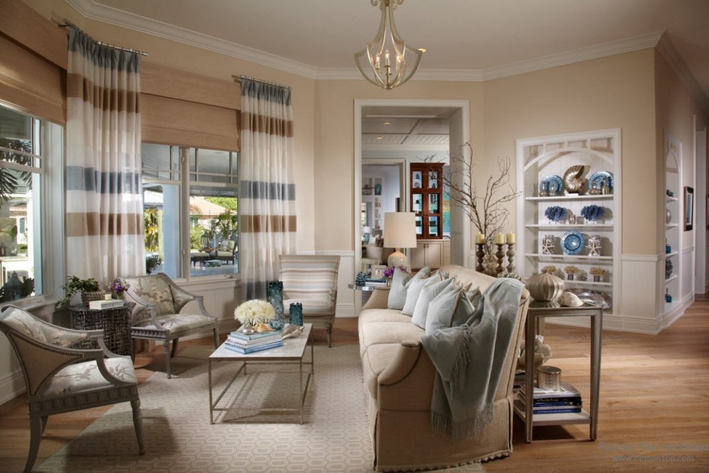 Применение бежевого цвета в интерьере гостиной не так уж редко, даже можно сказать, что он весьма часто встречается разных помещениях для создания любого стиля. Бежевый цвет нейтральный, и поэтому он не возбуждает, но и не действует как снотворное.