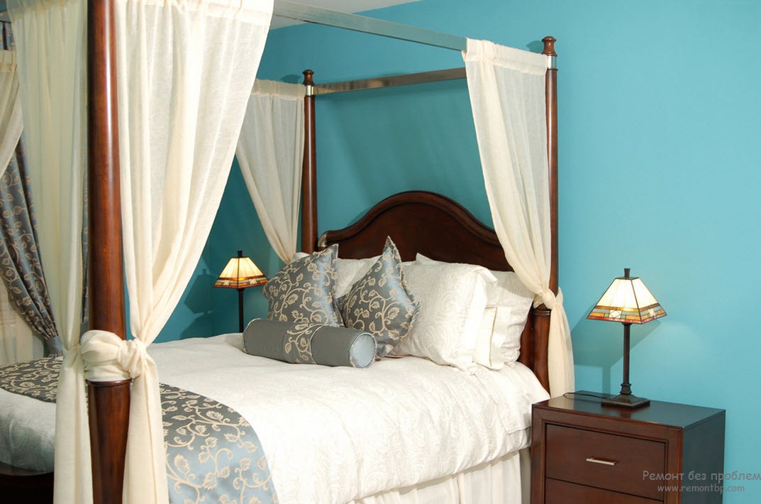 В Восточном стиле очень часто используют бирюзовый цвет для декорирования стен. Это может быть не только краска, но мозаика, драпировка тканями или коврами.