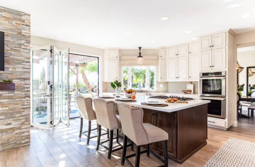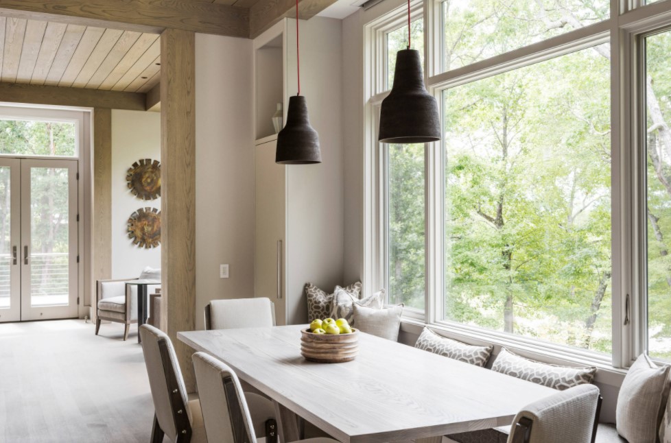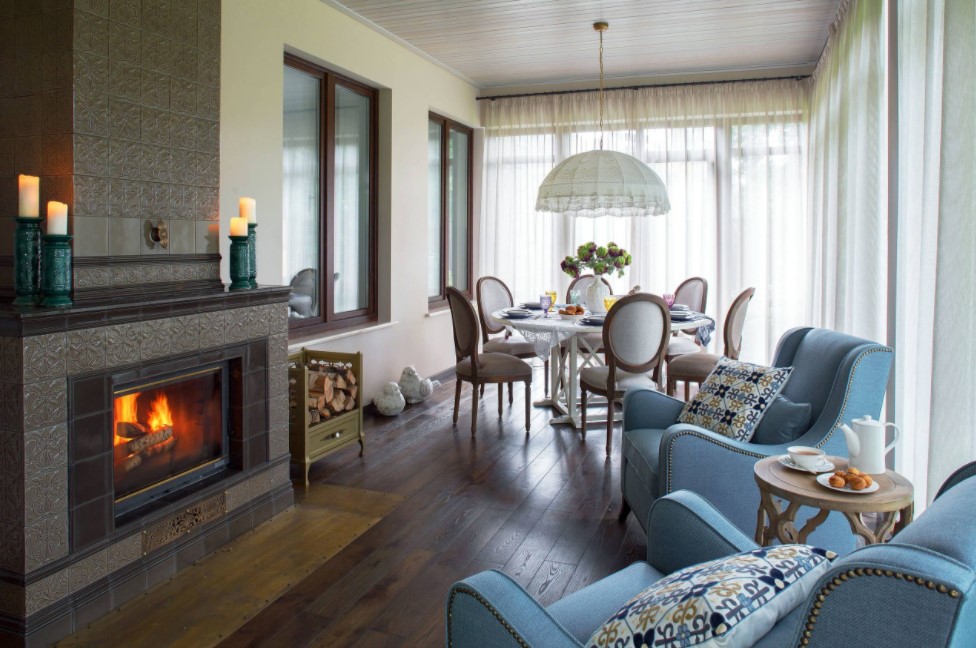 В последнее время очень актуальны декоративные элементы из натурального дерева. Это старые или искусственно состаренные доски на стене, эффектные настенные панно, отдельно декорированные деревянными спилами стены или перегородки.