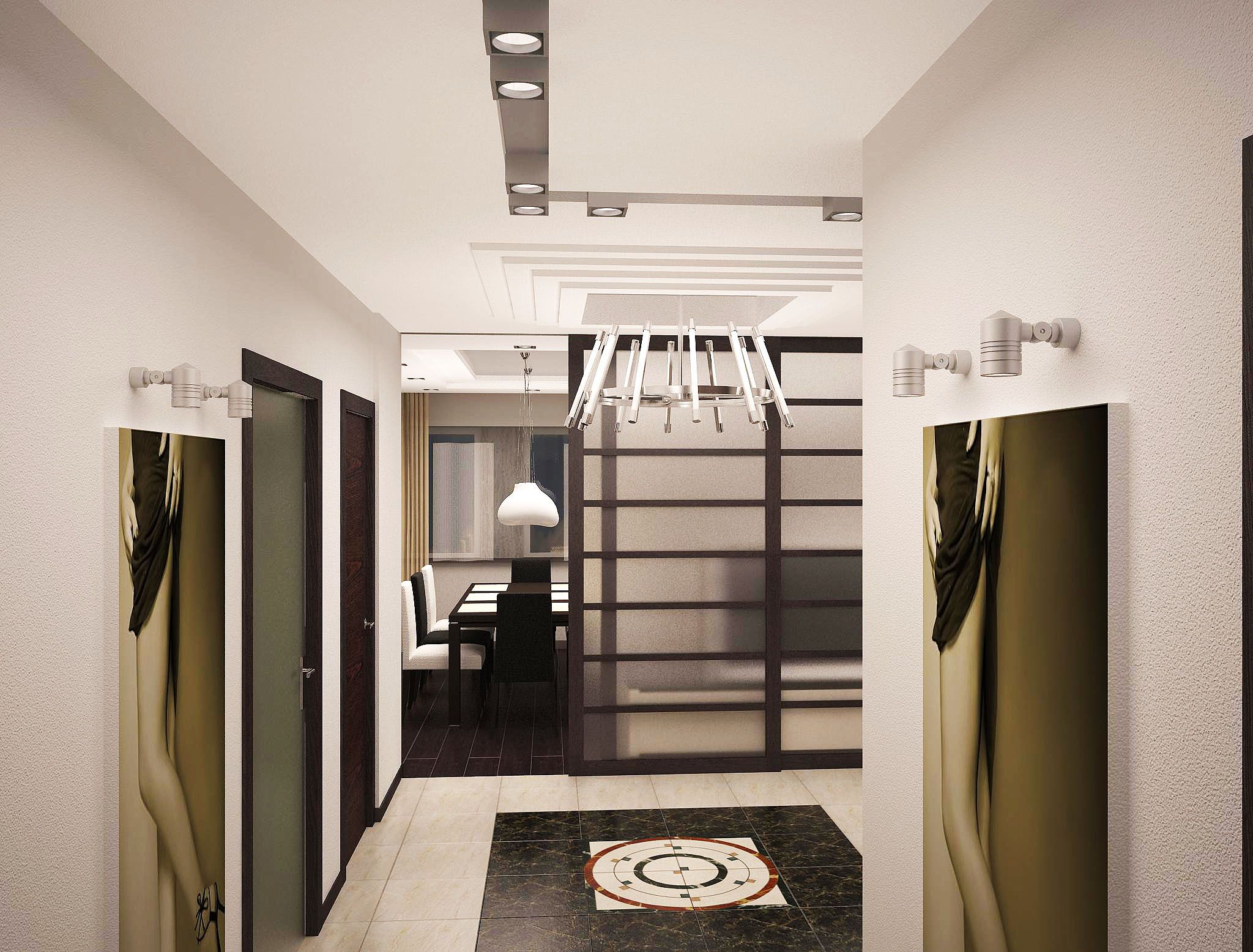 Для покрытия пола лучше остановить свой выбор на керамической плитке или керамограните, качественном линолеуме. Идеальные решения для потолка крупногабаритной прихожей – гипсокартоновый или натяжной.