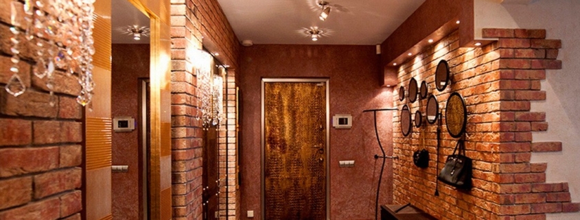 Вопрос качественного и яркого освещения чрезвычайно актуален для больших комнат, особенно для тех, в которых обычно строительным проектом не предусмотрены окна. Лучший вариант в таком случае – это многоуровневое и многокомпонентное освещение. Оно может быть представлено в большой прихожей крупной и яркой центральной люстрой, точечными светильниками или светодиодной лентой по периметру, подсветкой отдельных зон и элементов интерьера, например, зоны входа и настенного зеркал, а также можно использовать современные технологичные споты.