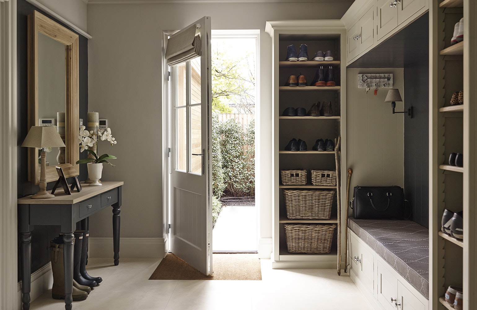 Крупногабаритная прихожая традиционно разделяют на несколько основных функциональных зон: место для хранения повседневной одежды и обуви со шкафами, тумбами, обувницами, входную зону с ковриками, сидениями, ключницами, а также непосредственно саму прихожую – свободное пространство большой комнаты.
