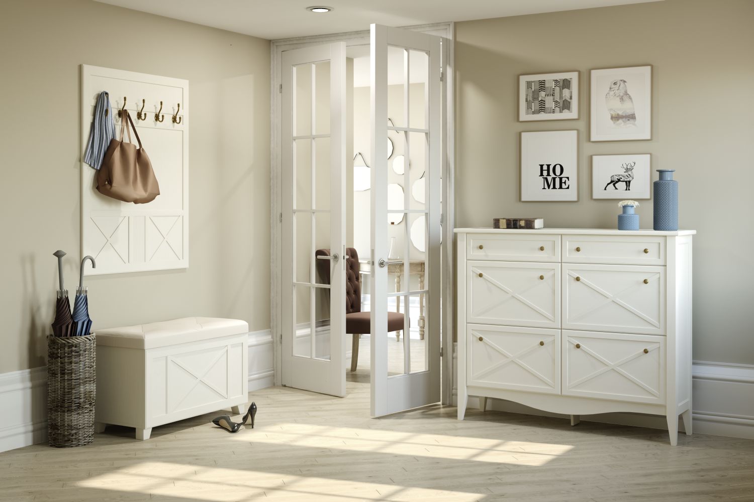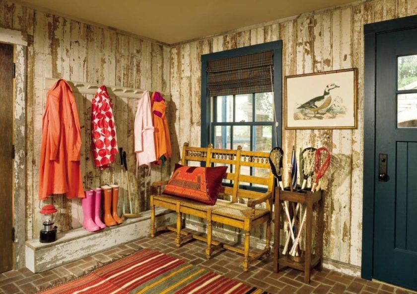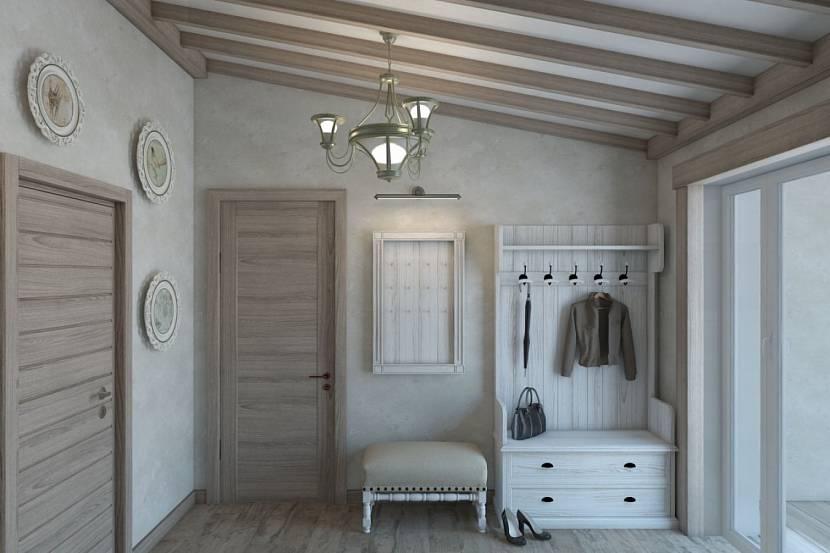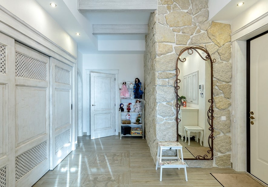 Милый французский стиль очень уместен для прихожей комнаты большой площади. Салатовые, лавандовые или неяркие желтые оттенки в отделке, живые комнатные цветы в горшках, цветочные узоры и мотивы, искусственно состаренные аксессуары или элементы интерьера – все это поможет создать неповторимый интерьер как во французском Провансе.