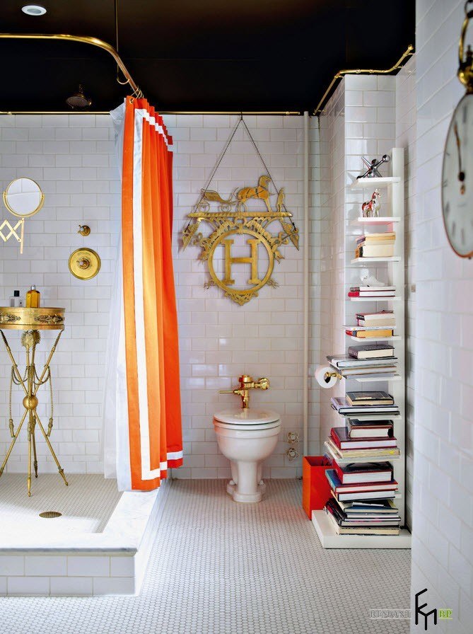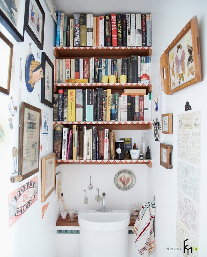 И напоследок два образа туалетных комнат, созданных специально для книголюбов, для которых туалет как кабинет. Для некоторых домовладельцев туалет – единственное место, на стенах или полочках которого можно разместить предметы коллекционирования или сувениры, привезенные из различных путешествий.