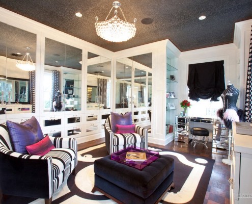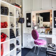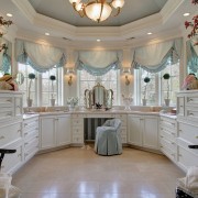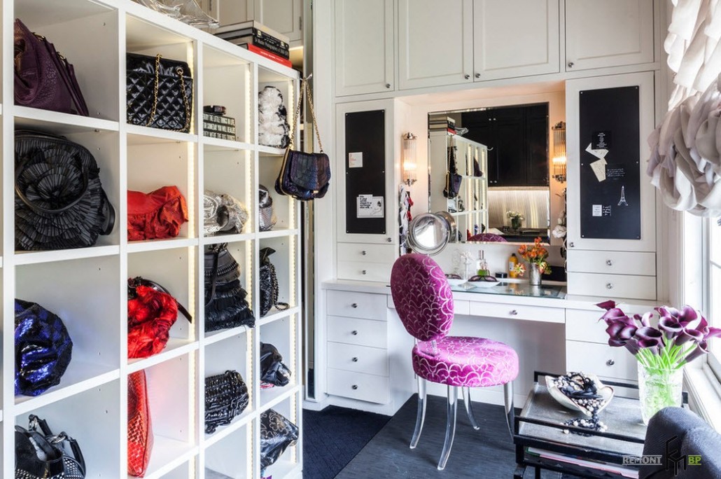 Кроме этого белые фарфоровые статуэтки добавят женскому уголку нежности и воздушности. Дополнением могут быть стулья из прозрачной пластмассы, украшенные шелковой тканью или боа из страусовых перьев. Обычный стул тоже можно приспособить, сшив для него элегантный чехол подходящего цвета. Хорошо, если такой чехол будет выполнен из той же ткани, что и шторы, покрывала или прикроватные банкетки.