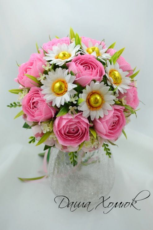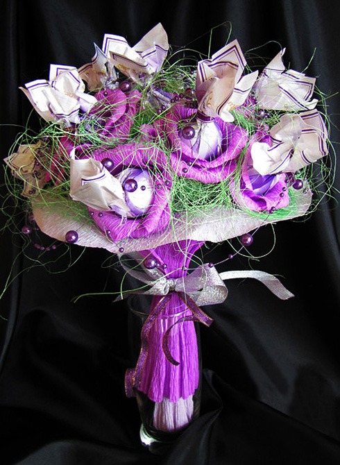 Пожалуй, самый популярный подарок на сегодня – это цветы и конфеты. Но если такое сочетание кажется вам слишком банальным, то самое время сделать что-то более оригинальное. К примеру, букет из конфет, который можно подарить на любой праздник и абсолютно каждому человеку. Это действительно отличная идея, так как конфеты можно съесть в любой момент, а цветочная композиция еще долго будет радовать глаз.
