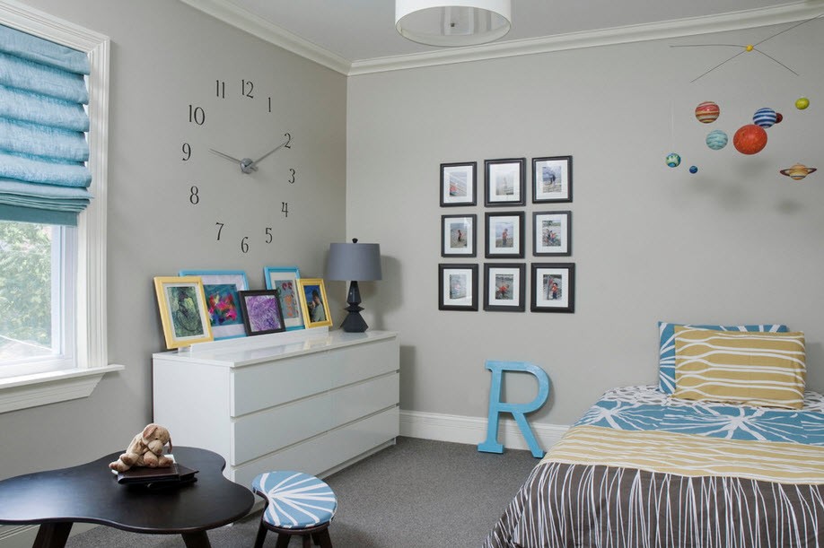 В детскую лучше всего ставить большие часы, так как детям проще воспринимать большие предметы, поэтому такие цифры им будет удобнее изучать. Интересным вариантом для детской комнаты будут большие часы в виде солнышка, облачка, ромашки, машинки и других детских вариантов. Несмотря на рекомендуемые внушительные размеры часов для детских комнат, стали производить модели бесшумных часов, работу механизма совершенно неслышно. Это очень удобно, маленьким членам семьи ничто не мешает спокойно спать. К слову, в любую комнату подойдет модель бесшумных часов, ведь громкое тиканье мешает не только детям.