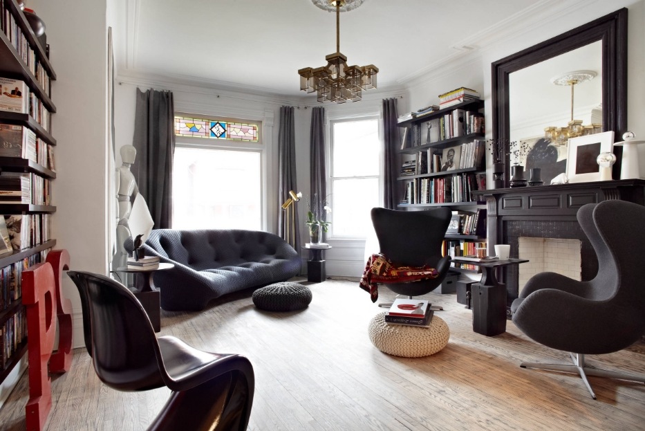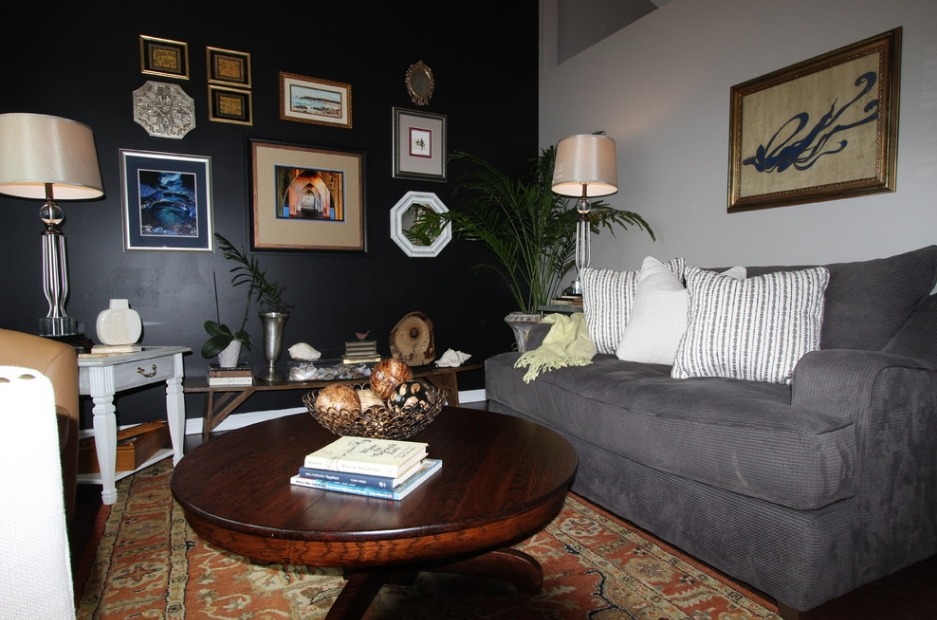 Примечательно, что дизайнеры часто комбинируют в интерьере новые и старые тенденции. К примеру, в просторной гостиной черного цвета вполне хорошо могут смотреться классические предметы вместе с современным техническим оборудованием. Такое сочетание всегда уместно независимо от размера комнаты. В то же время, в небольшую гостиную лучше не приобретать мебель ярких цветов. В таком случае она будет перенасыщенной деталями. Что в целом способствует визуальному уменьшению помещения.