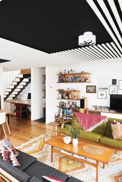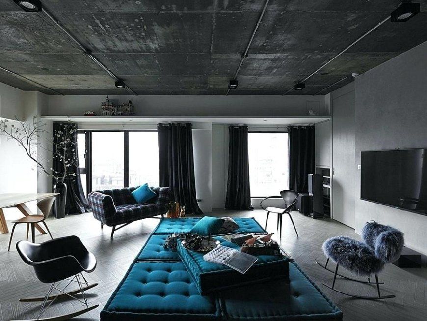 Черная гостиная: цветовое решение для потолка