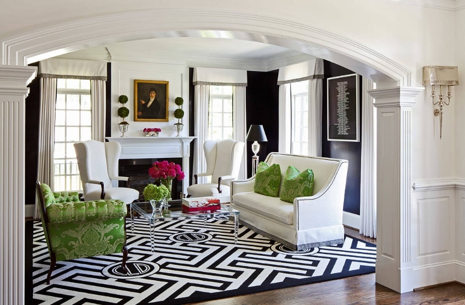 Опытные специалисты рекомендуют избегать сочетания черного цвета с коричневым, зеленым или фиолетовым. В противном случае гостиная может получиться достаточно мрачной и даже безжизненной. В то же время, эти тона могут быть уместными в качестве небольших акцентов в виде декора. Но если их заменить более светлыми тонами, такими как кофейный, салатовый или лавандовый, то помещение будет выглядеть совершенно по-другому. Что касается ярких оттенков, таких как красный, оранжевый или желтый цвет, то в данном случае они не уместны. Поскольку такое сочетание агрессивное и редко подходит для интерьера.