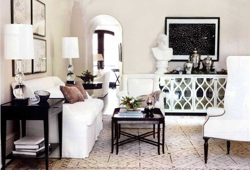 Что касается стилей, то черно-белый интерьер чаще всего используют при оформлении гостиной в стиле минимализма. Черно-белый фон как бы создан для этого стиля, усиливает его индивидуальность и аскетизм.