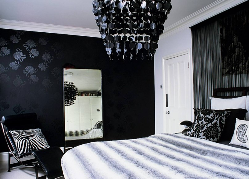 Следует избегать перенасыщения интерьера множеством черно-белых узоров, орнаментов, принтов. На стадии разработки выбранного дизайна интерьера спальной комнаты важно правильно расставить и световые акценты с помощью естественного и искусственного освещения. Например, черный потолок с гармоничной подсветкой не выглядит мрачно и не создает давящую атмосферу в спальне.