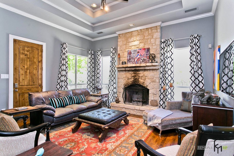 Поскольку не все предпочитают жить на шахматном поле и отсутствие альтернативных цветов может слегка шокировать, требуется добавить пару красочных мазков. Сувениры и свет и во взаимодополняемости придадут иное звучание комнате. Разрядит напряжение и тепло дерева в материализации мебельного гарнитура из дуба или ясеня, красного дерева или их качественных имитаций.