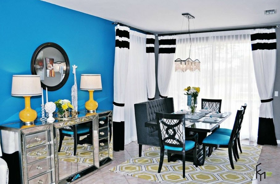 Эффектная «парочка» напрочь прижилась в интерьерном декоре. Дружеское противостояние цветов магическим влияет на подсознание, и благодаря изящной игре бликов продуманные ходы всегда будут успешными.