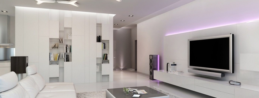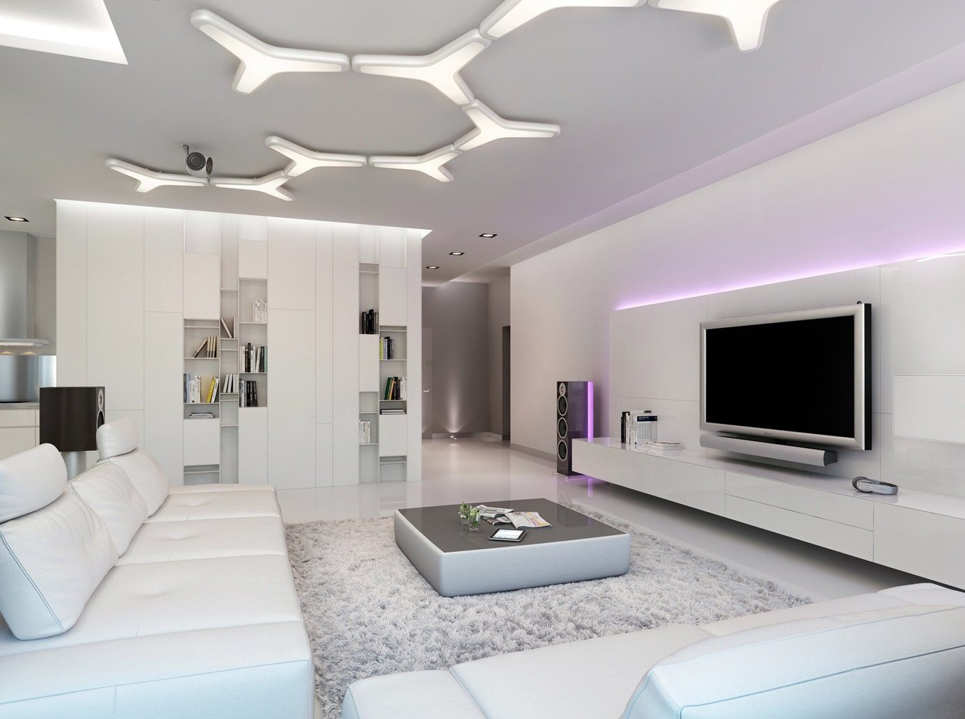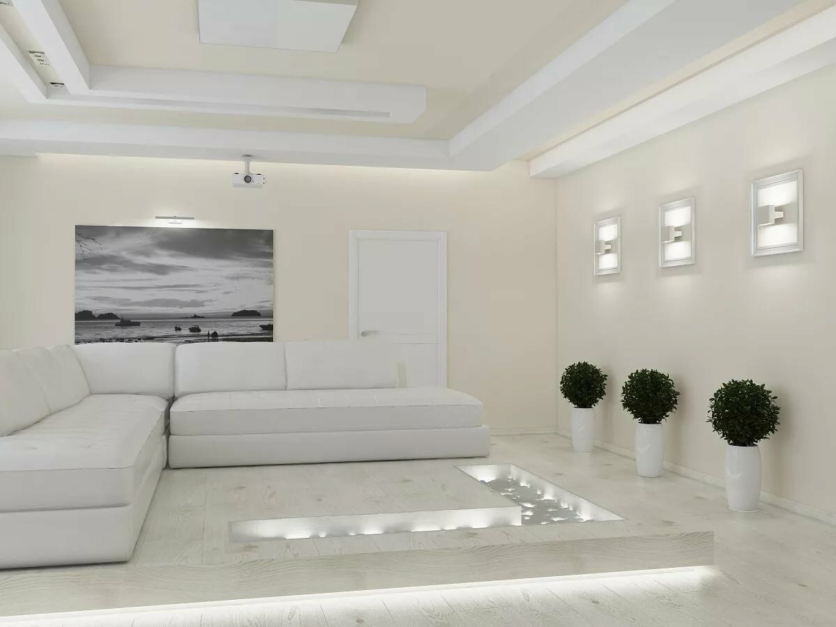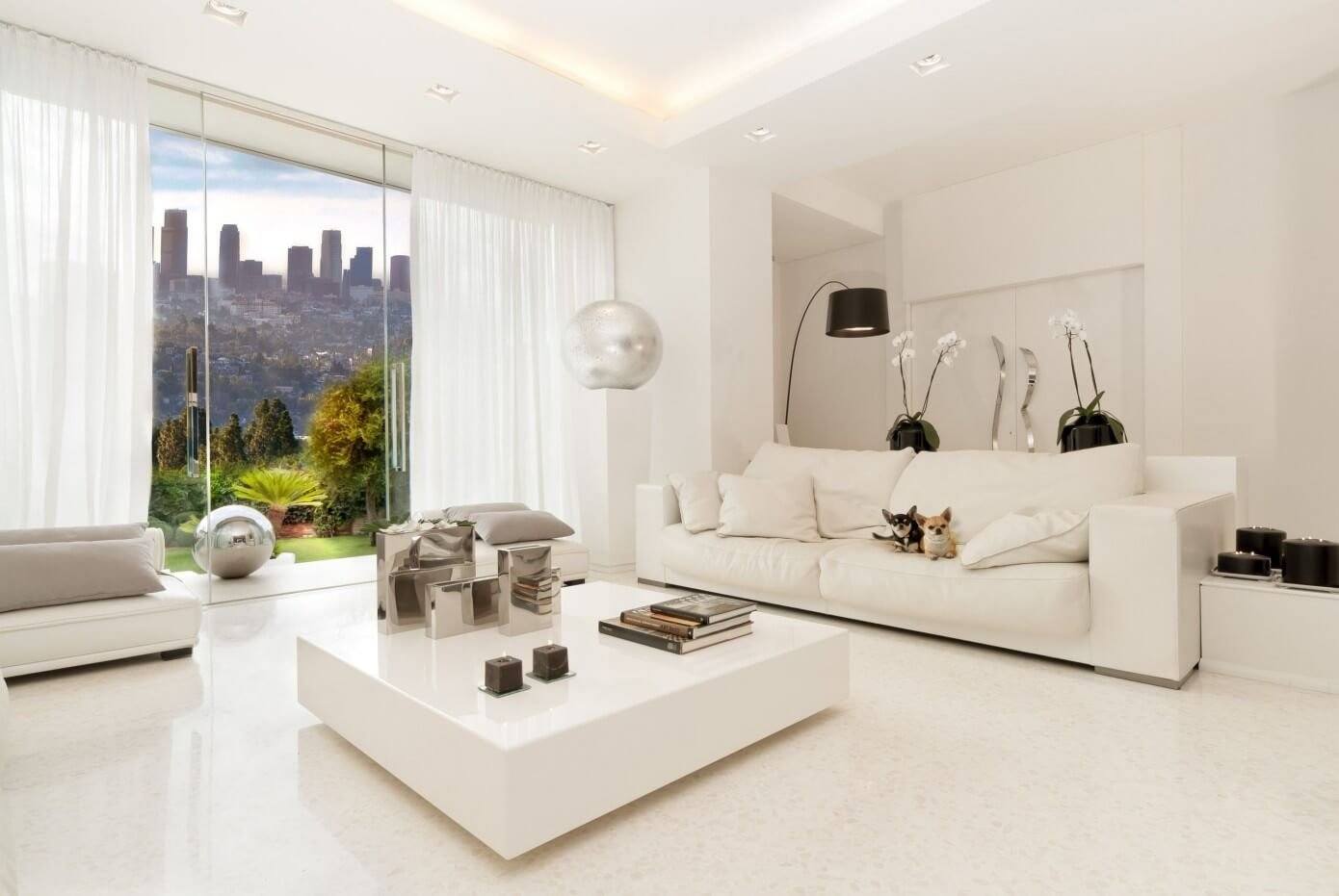 Черно-белая домашняя гостиная в стиле минимализма — это строгая мебель, геометрически правильные формы, отсутствие различных рисунков и орнаментов, каких-то узоров. Допускается использование минимального количества ярких акцентов.