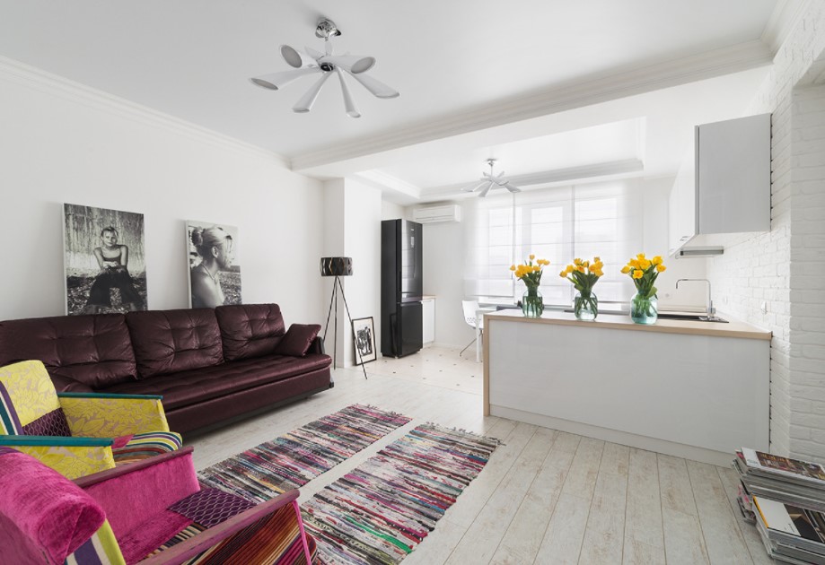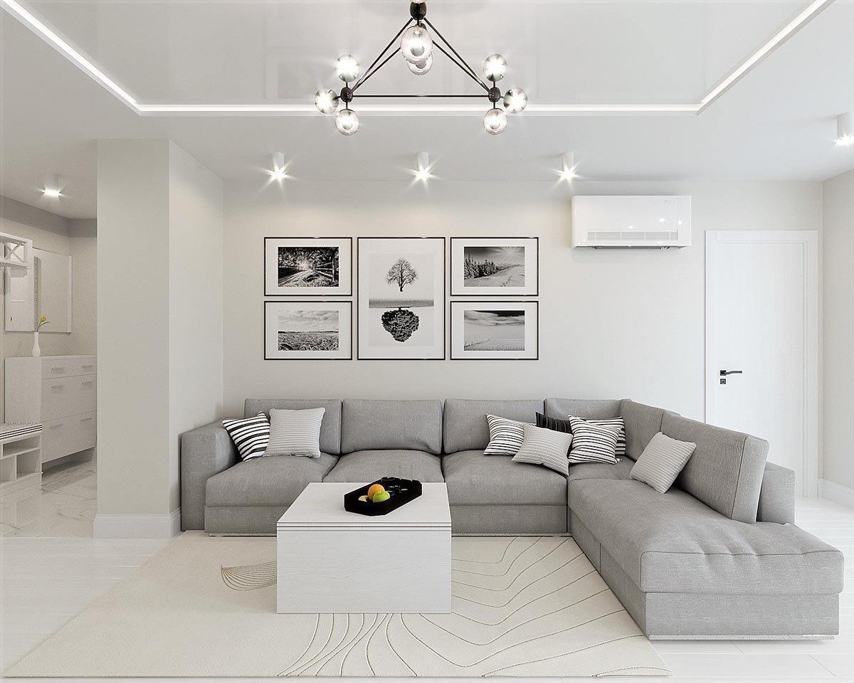 Сочетание контрастных цветов всегда востребовано и актуально, а потому черно-белая гамма практически никогда не выходит из моды. Такие цвета подходят для обстановки гостиной сразу в нескольких стилях, в том числе, в минимализме, скандинавском и др.