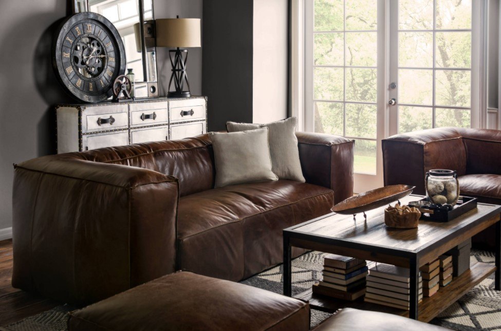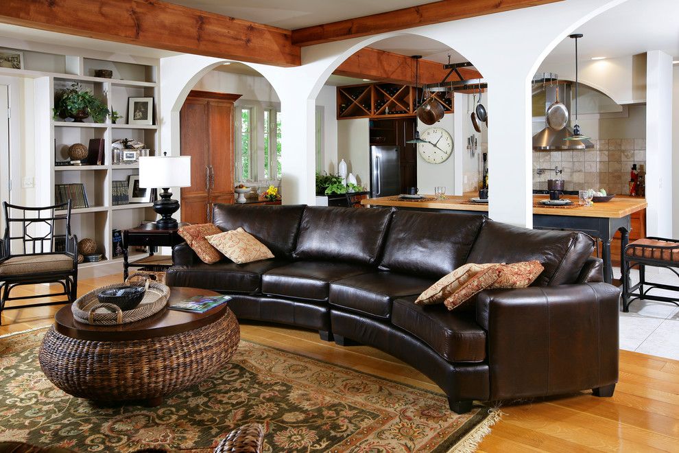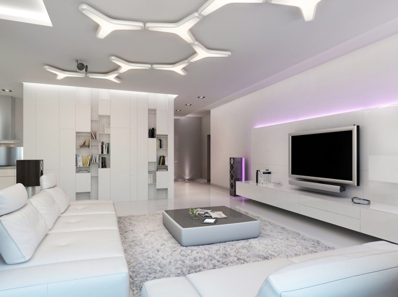 Для монохромной гостиной подойдут изделия из кожи, декор-элементы из натурального дерева. Просто следует придерживаться простого правила – соблюдать контраст, выбирая мебель и декор для комнаты.