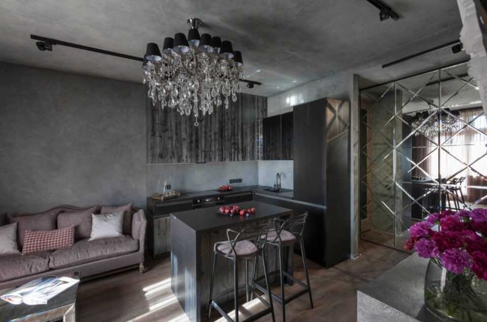 Опытные дизайнеры советуют для оформления стен и потолочной зоны все-таки использовать белый цвет или его оттенки, а вот мебель лучше выбирать все-таки черной. Но нельзя не отметить, что чрезмерное преобладание темного может спровоцировать у человека, находящегося в такой гостиной, плохое и угнетенное настроение.