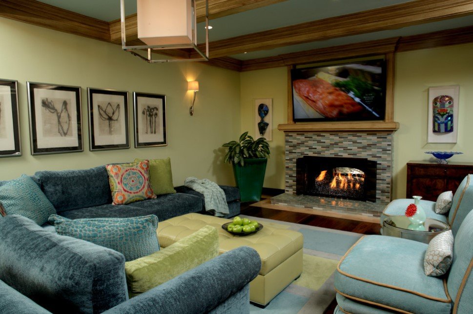 - Красные тона добавят энергии, поднимут настроение, взбодрят. Зеленые оттенки освежат и взбодрят. Желтые и коричневые цвета сделают помещение по-домашнему уютным и располагающим. Синий – цвет изыска и роскоши. А вот серый поможет сбалансировать общую обстановку.