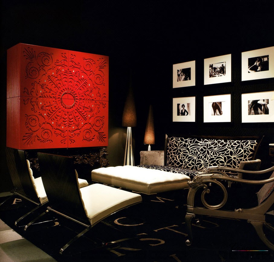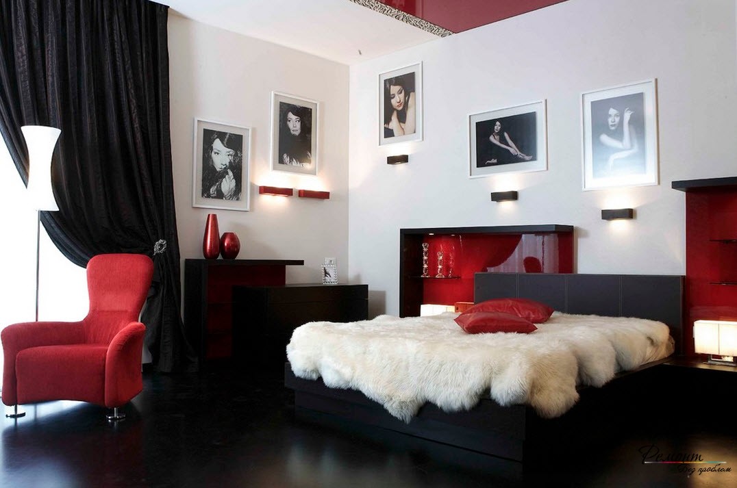 Союз черного, красного и белого сделает любую комнату, даже самую простенькую или скромно обставленную, стильной, презентабельной и праздничной. Здесь чувствуются нотки вызова, притягивающие все внимание.