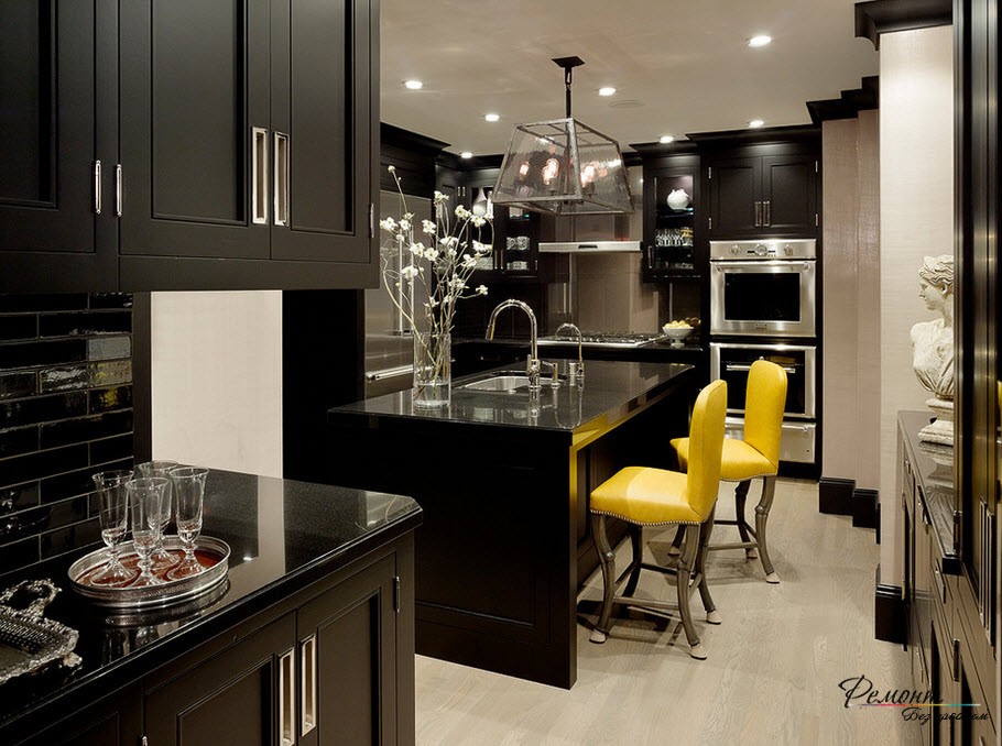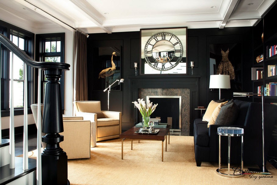 Черный цвет нейтрален, он олицетворяет классику, элегантность и респектабельность. В отношении практически любого цвета, особенно нейтрального, есть мнения за и против, но при желании любые минусы можно сделать плюсами, а недостатки превратить в достоинства. Итак, какие недостатки у черного цвета? Если быть объективными, то не так уж и много. Конечно, если комната маленькая, то черный сделает ее мрачной и еще больше уменьшит ее размер (визуально, естественно). Но не стоит из-за этого отказываться от черного, просто возьмем его в небольшом количестве и разбавим другими цветами. То есть чаще всего недостатками этого цвета считается мрачность и зрительное уменьшение пространства и все вытекающие из этого последствия. Но! Преимуществ у него гораздо больше, а при правильной подаче и грамотном использовании от недостатков не остается и следа. Если взять черный цвет в качестве фона, то его глубина выделит важные детали интерьера, придав им выразительности. К тому же сам фон черного цвета будет играть роль лишь второго плана, как основа, выполняющая собирательную функцию. И вот в таком исполнении помещение не будет зрительно уменьшаться, а, наоборот, произойдет расширение по принципу «звезд в бесконечной вселенной».