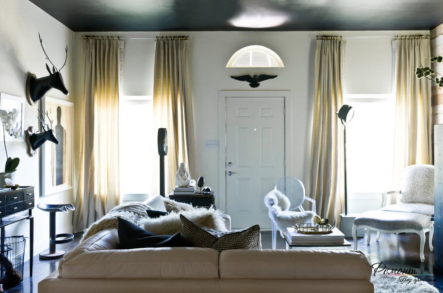 Пропорции можно брать в зависимости от желания сделать интерьер темнее или светлее. Больше черного – темнее атмосфера и, наоборот.