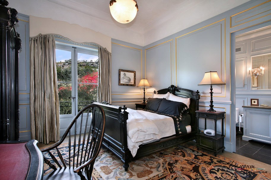 Это очень неординарный и мистический интерьер. Он выражает в себе одновременно и готику и пафос. Не каждому по душе приходится такое сочетание, поэтому стоит хорошенько задуматься прежде, чем оформить таким образом гостиную. О детской комнате и речи быть не может – слишком величественная и нереальная атмосфера будет подавлять детей. А вот для спальни, кухни и ванной вполне возможно. Особенно для спальни, если вам нравится обстановка таинственности, полной энергии и тонких материй. Дополните картину канделябрами, изящным хрусталем и вы поверите в магию.