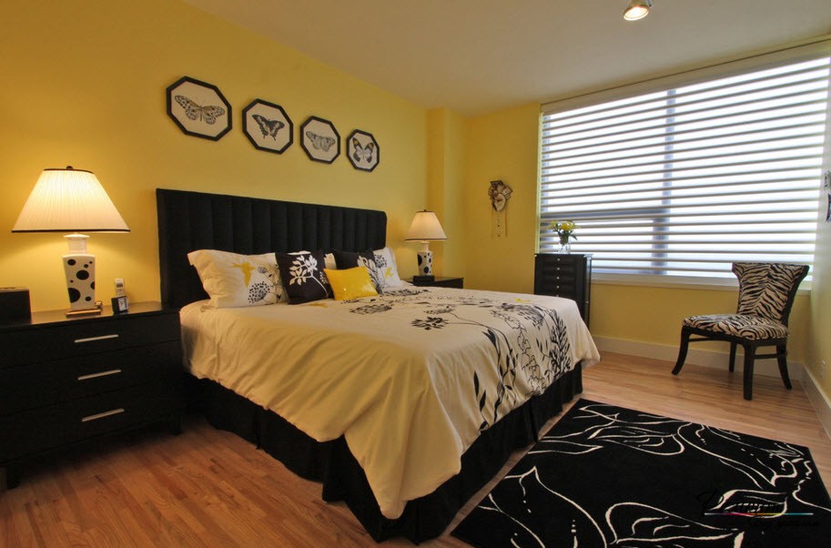 В чистом виде сочетание черного и желтого вызывает беспокойство и чувство опасности. Поэтому к этому тандему добавляют белый цвет, и тогда атмосфера становится с изюминкой, с четкими формами, бросающей вызов серым будням.