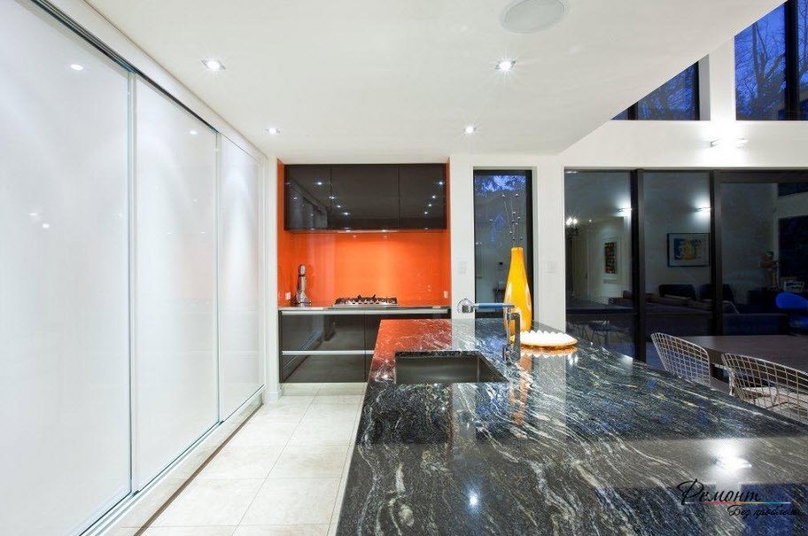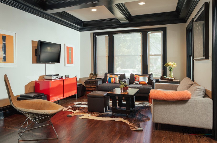 Сочетание черного с оранжевым когда-то использовалось рыцарями для подчеркивания чести и доблести. Но в наше время рыцарей не осталось, а есть ассоциация с Хэллоуином и ядовитыми насекомыми и рептилиями. Но все же и в наши дни сохранилось значение храбрости, так как празднование Хэллоуина – это победа над страхом перед темными силами. Какое это имеет отношение к интерьеру? А самое прямое. Зная эти нюансы, не стоит использовать оба цвета в равном количестве. А черный лучше брать не слишком насыщенных тонов, к тому же можно разбавить этот союз белыми, серыми или коричневыми тонами. Но ни в коем случае не оформляйте этим сочетанием детскую комнату, на них это подействует перевозбуждающе.