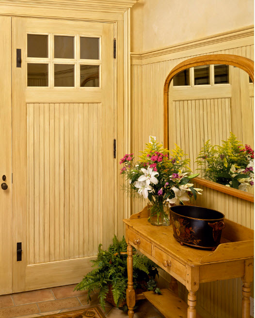 Один из вариантов использования древесины со светлым, слегка потертым природным рисунком – исполнение потолочных балок. Такая расцветка не утяжеляет образ не только потолка, но и всего помещения, придавая при этом образу интерьера легкий налет деревенской жизни, близости к природе.