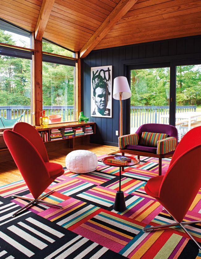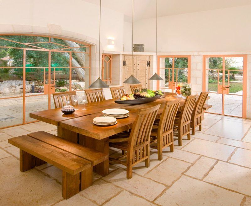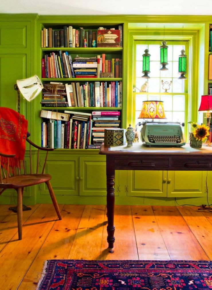 Орех в своем большинстве имеет теплые оттенки, поэтому позаботьтесь о том, чтобы другие цвета были такого же типа. Отдайте предпочтение желто-оранжевому, суконному зеленому или винному. Хорошей идеей будет дополнить дверь, пол и мебель текстилем в коричневом, бежевом или рыжем окрасе. Комната должна быть по максимуму оформлена в натуральных тонах.