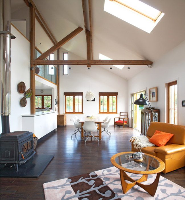Пол цвета орех в интерьере
