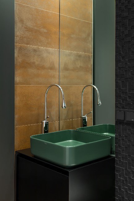 Кроме того, мятный и сам по себе хорошо смотрится в помещении ванной, если использовать его умеренно. Зеленый может красиво комбинироваться с нечастыми пятнами желтого цвета.