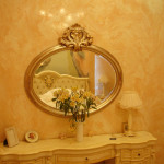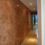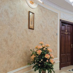 - Все последующие слои предназначены для создания узоров, рисунков и прочих эффектов. Как это сделать? С помощью гибкого стального шпателя необходимо нарисовать короткие мазки, после чего стена будет напоминать леопардовую шкуру. Теперь необходимо наложить еще один подобный слой, затем еще и еще. Это делается до того, как «пятнистость» будет еле заметна и будет больше напоминать игру света и тени.