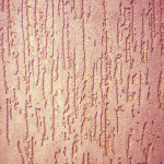 - После того, как материал загустеет (это примерно 30 минут), необходимо легкими и скользящими движениями пройтись по поверхности теркой. Это необходимо для выравнивания слоя и создания рисунка. Новички могуьт использовать более простые, традиционные виды рисунков: дождик, волны, круги и т.д. Главное – это уверенные и мягкие движения, не стоит слишком сильно давить на терку. Помните, чем дольше будет раскатан короед – тем менее заметным получится рисунок, поверхность станет глянцевой и эффект штукатурки будет потерян.
